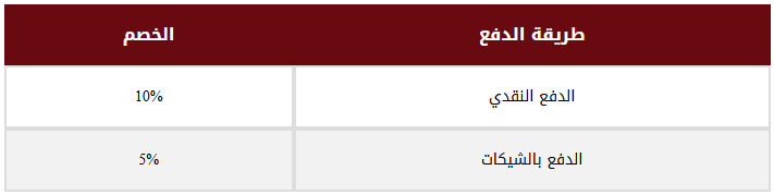 الخصومات المذكورة أعلاه تشمل الرسوم الدراسية فقط.