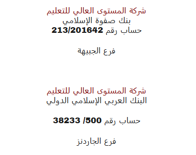 - الدفع المباشر للأكاديمية: نقدًا أو بشيكات مصرفية.